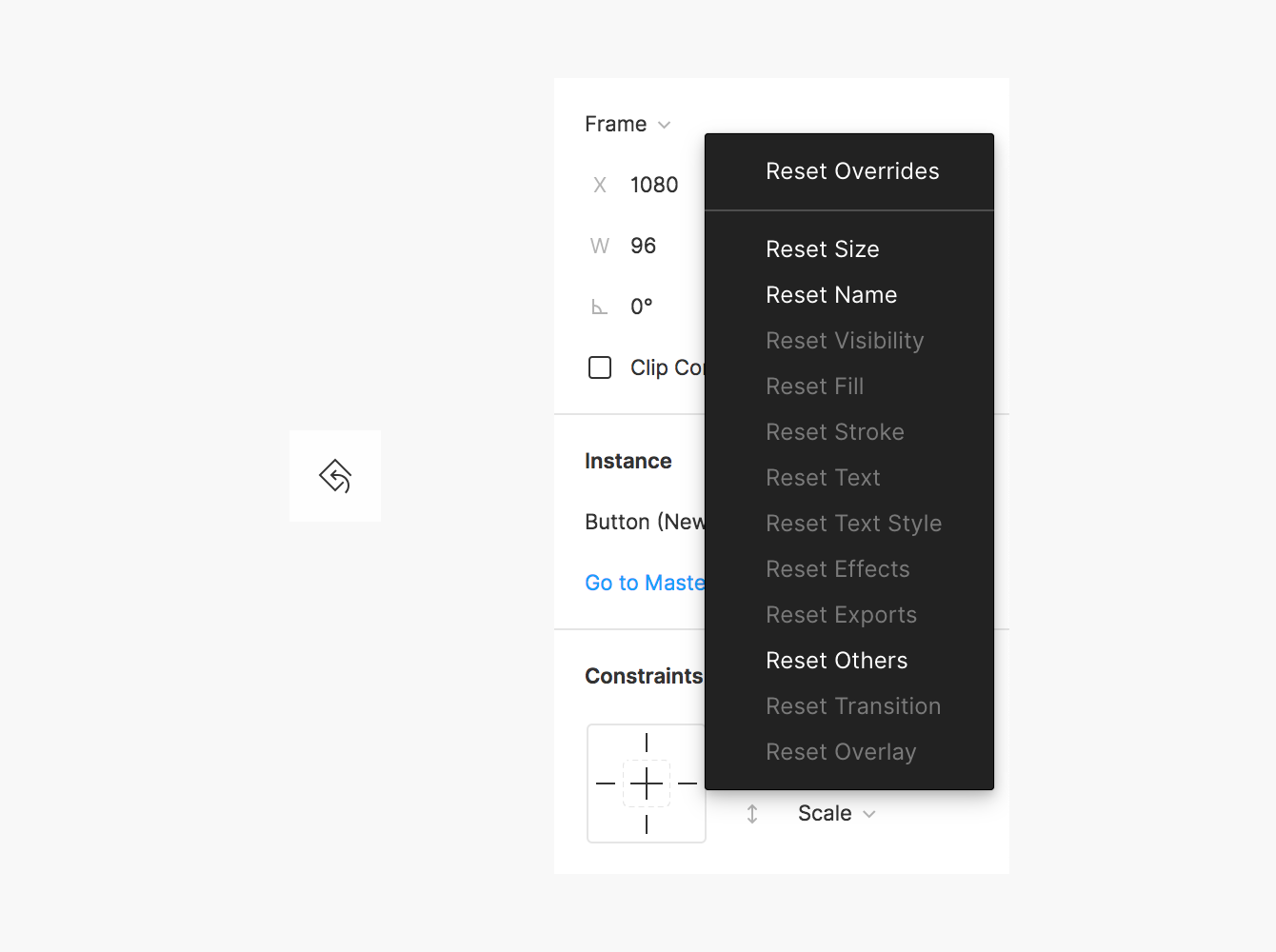 There’s also a button to reset any overrides you created, it’s a little diamond with an arrow in it: