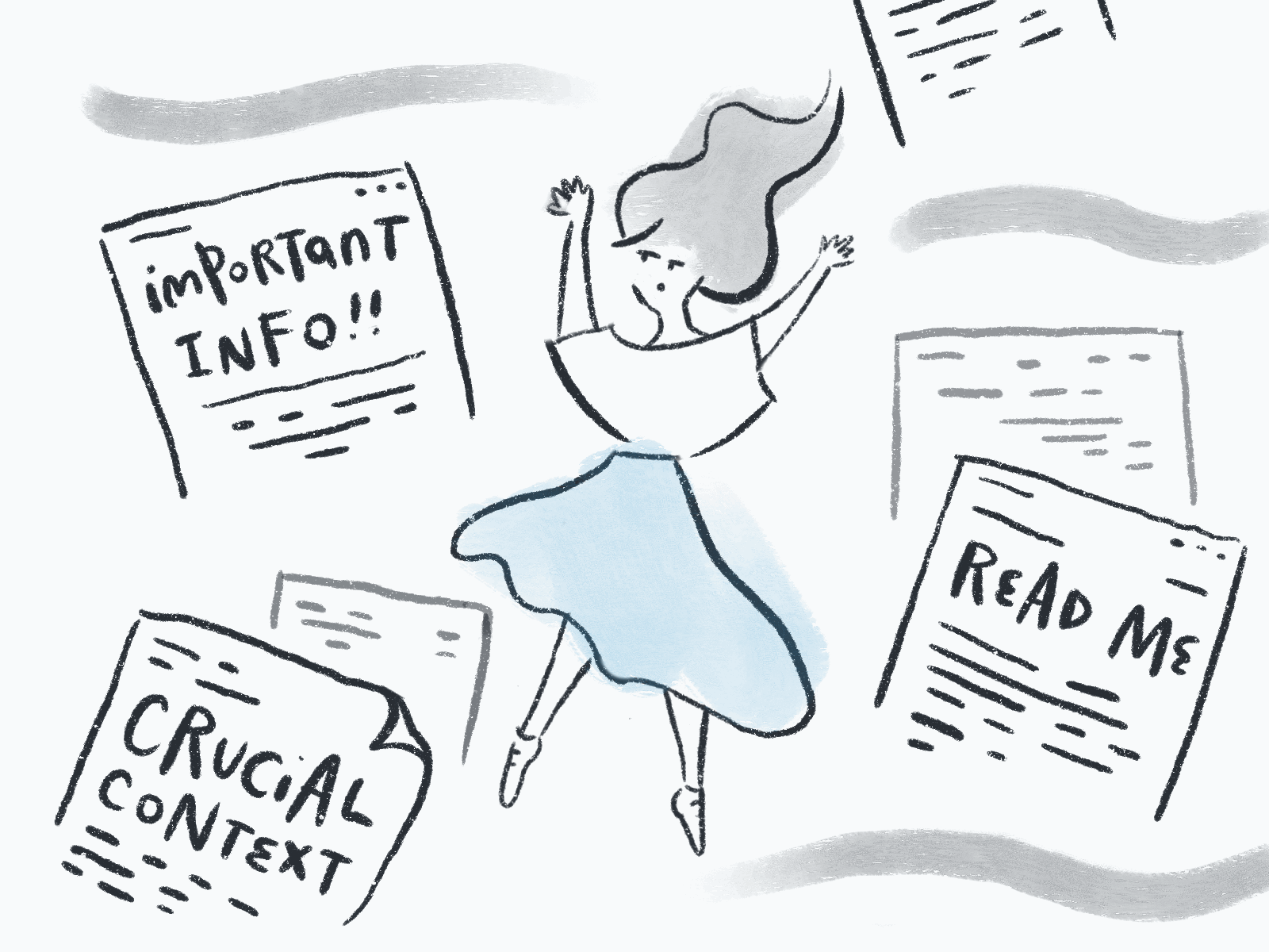 Start to feel like you’re drowning in words. Lay in bed at night and think about all the internal terms and projects you still don’t understand. Sweat. Let that gnawing feeling at the pit of your stomach grow and listen to the terrified voice of your insecure ego.
