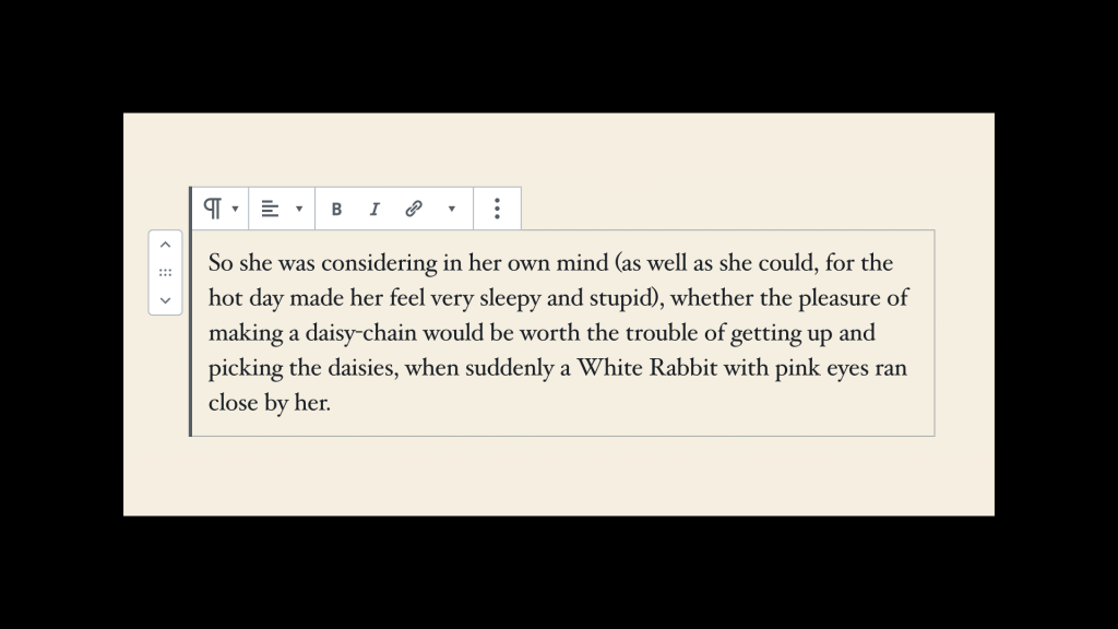 The detachment in turn allowed us to increase the tap target size. Along with simplified icons and an increase in contrast, this helped the block toolbar look distinctly like editor UI with less risk of blending into the theme: