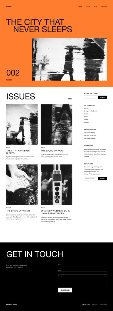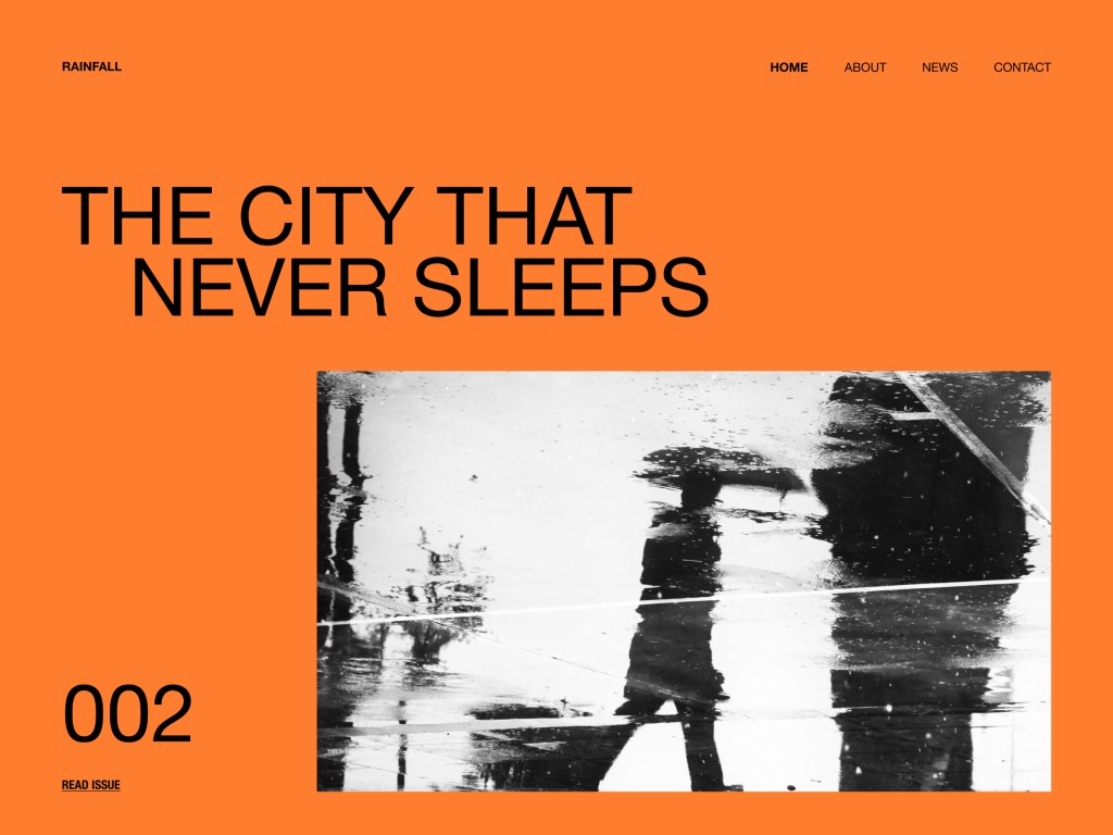 Rainfall is a clean, objective blogging theme strongly inspired by Swiss Design.